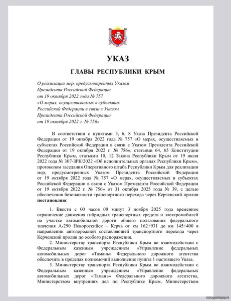 |  Глава Республики Крым подписал указ, согласно которому электромобилям и гибридным машинам запрещается ездить со стороны полуострова по Крымскому мосту.